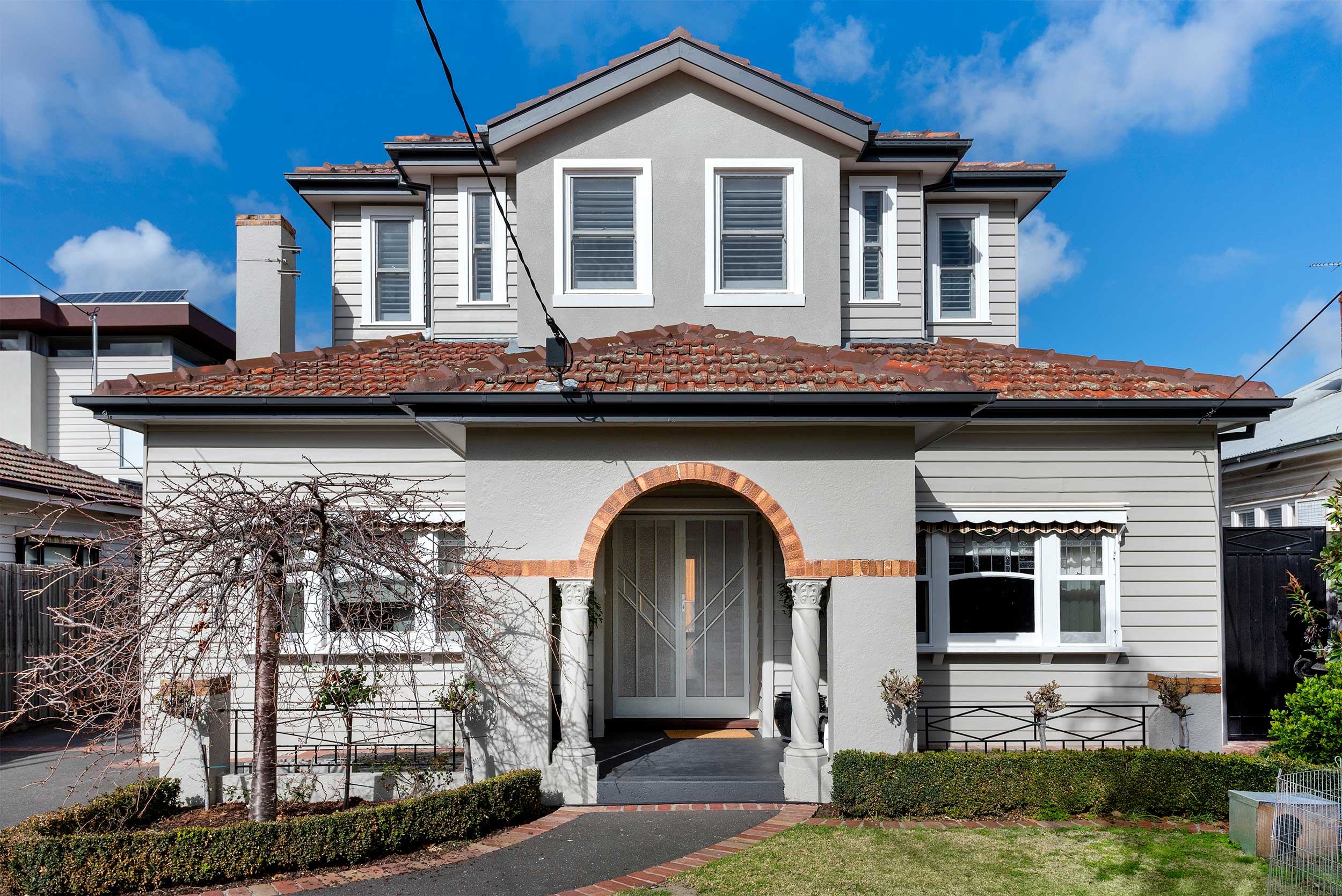 As the photos show, the second storey extension nestles in sympathetically with the existing and original 1930’s ground floor Californian bungalow home. The stepped facade of the upper extension follows the roof contour below, providing the gentle integration of a large extension without creating overt, visual bulk.